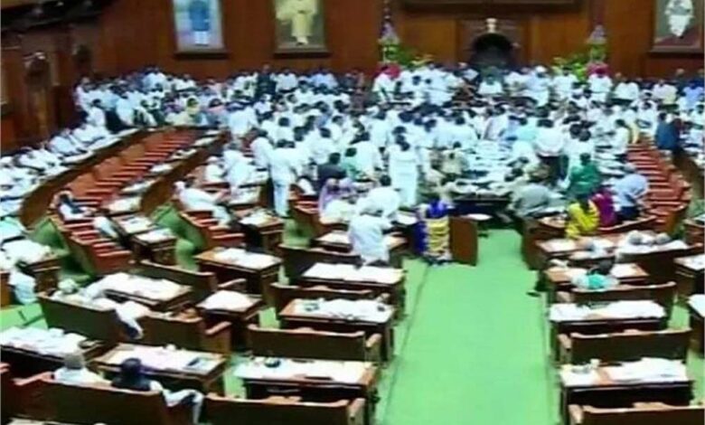 मुस्लिम आरक्षण को लेकर कर्नाटक विधानसभा में जमकर हंगामा, BJP के चार विधायको को निकाला