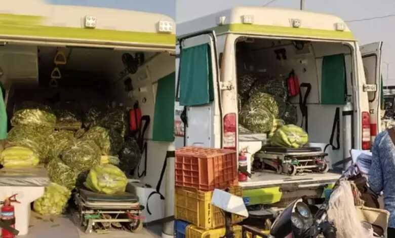 अशोकनगर : एंबुलेंस में मरीजों की जगह सब्जियां ढोई जा रही, फोटो सोशल मीडिया पर वायरल