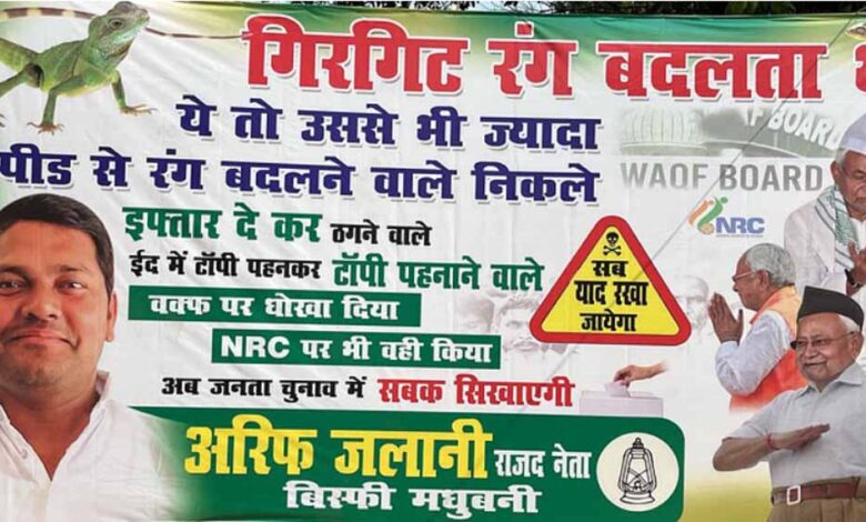 वक्फ संशोधन बिल को लेकर विपक्ष के नेता बिहार में सीएम नीतीश कुमार और उनकी पार्टी पर लगातार हमला बोल रहे हैं। पूर्व सीएम लालू प्रसाद यादव की पार्टी ने तो पोस्टर वार शुरू कर दिया है। पूर्व सीएम राबड़ी देवी के आवास के सामने सीएम नीतीश कुमार का एक पोस्टर लगाया गया है। इसमें उन्हें राष्ट्र स्वयं सेवक संघ के गणवेश में दिखाकर उनकी आलोचना की गई है। राजद नेता आरिफ जिलानी ने सीएम नीतीश कुमार के वक्फ संशोधन विधेयक पर उनके रुख को लेकर यह पोस्टर लगाया है।