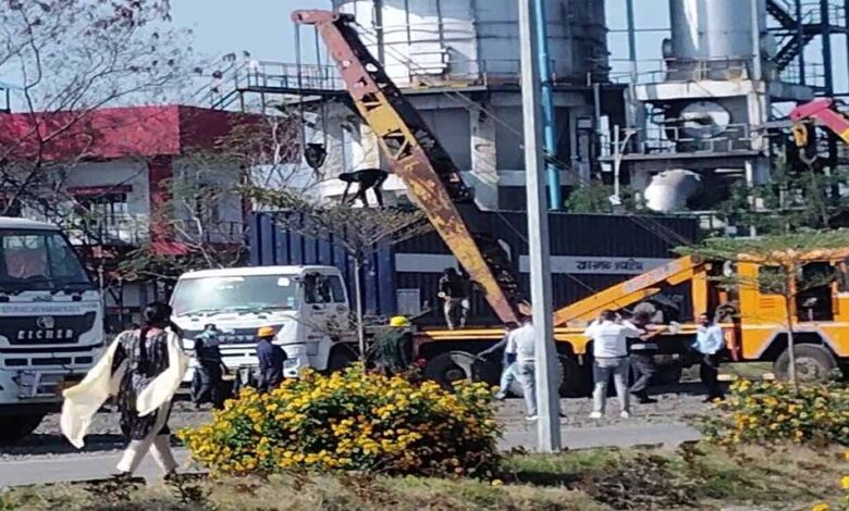 पॉल्यूशन बोर्ड के अधिकारी प्लांट के अंदर मौजूद हैं। हवा में रसायन के स्तर को मापने के लिए सैंपलिंग मशीन लगाई गई हैं।