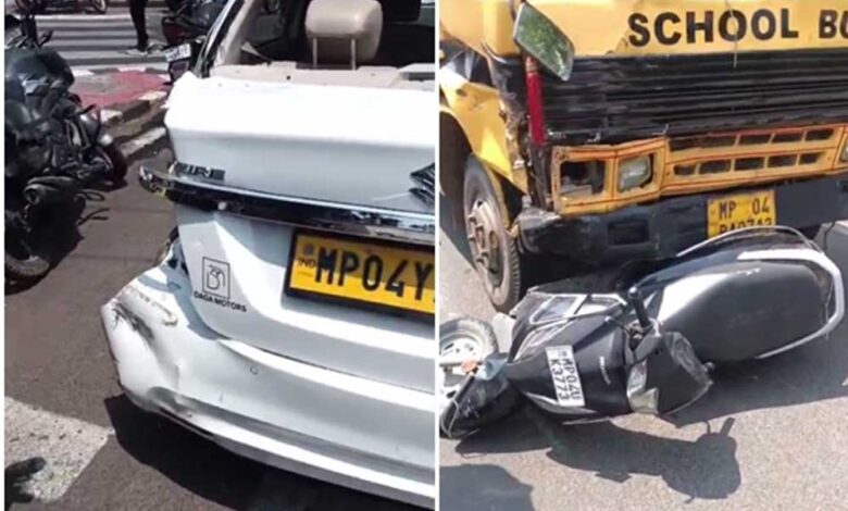 भोपाल के लाल बत्ती चौक पर शादी समारोह से वापस लौट रही बस ने कई वाहनों को टक्कर मारी, एक युवती की मौत हो गई