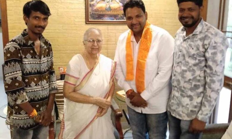 पूर्व लोकसभा स्पीकर ओर इंदौर में लगातार आठ बार की सांसद आदरणीय सुमित्रा महाजन ताई द्वारा सावरकर मंडल विधानसभा क्षेत्र क्रमांक 5 के सागर लखार को मीडिया प्रभारी नियुक्त होने पर बधाईयां दी,श्रीराम जी का भगवा दुपट्टा पहनाकर सम्मानित किया।ओर मिठाईयां खिलाकर मुंह मीठा करवाया।साथ ही पार्टी के साथ अपने कर्म के प्रति सजग और निस्वार्थ कार्य करने की प्रेरणा दी।स्वागत होने पर वीर सावरकर मंडल अध्यक्ष नितेश जैन ने बधाइयां दी। इस उपलक्ष्य पर अंतराष्ट्रीय अवॉर्डी सुनील ठाकुर,संजू मीणा,प्रदीप नायक राहुल चौहान उपस्थित हुए।