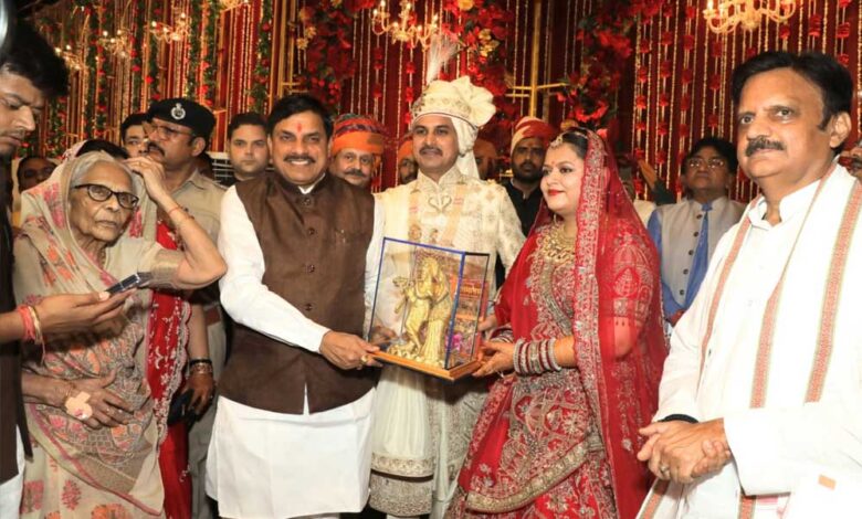 मुख्यमंत्री यादव मंत्री तोमर की बेटी के विवाह समारोह में शामिल होने ग्वालियर पहुंचे, वर-वधु को दिया आशीर्वाद