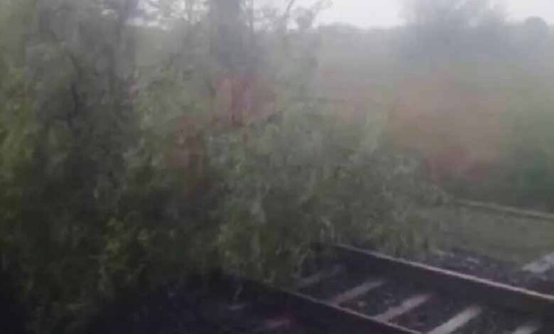 उज्जैन जिले में तेज आंधी और तूफान ने लगातार दूसरे दिन ट्रेन संचालन को रोक दिया, पटरियों पर गिरा पेड़
