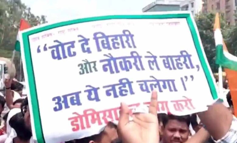 तेजस्वी यादव ने पिछले शनिवार को भी एक सभा में दोहराया है कि महागठबंधन की सरकार बनी तो सरकारी नौकरी में 100 फीसदी डोमिसाइल होगा, प्रतियोगिता परीक्षा का फॉर्म निःशुल्क होगा और परीक्षार्थियों को परीक्षा के लिए आने-जाने का खर्च भी सरकार देगी। लालू यादव 2016 में जब नीतीश के साथ गठबंधन में थे, तब उन्होंने 80 प्रतिशत डोमिसाइल मांगा था और तब नीतीश ने भी उनकी मांग से सार्वजनिक सहमति जताई थी। अभी चल रहे डोमिसाइल आंदोलन के नेता दिलीप कुमार 90 फीसदी डोमिसाइल मांग रहे हैं और कह रहे हैं कि दूसरे राज्यों के परीक्षार्थियों के लिए उपलब्ध पदों को 10 फीसदी पर रोका जाए।