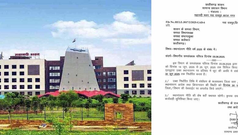 छत्तीसगढ़ शासन ने कर्मचारियों को दी बड़ी राहत, 30 जून तक स्थानांतरण आदेश वेबसाइट पर होंगे अपलोड