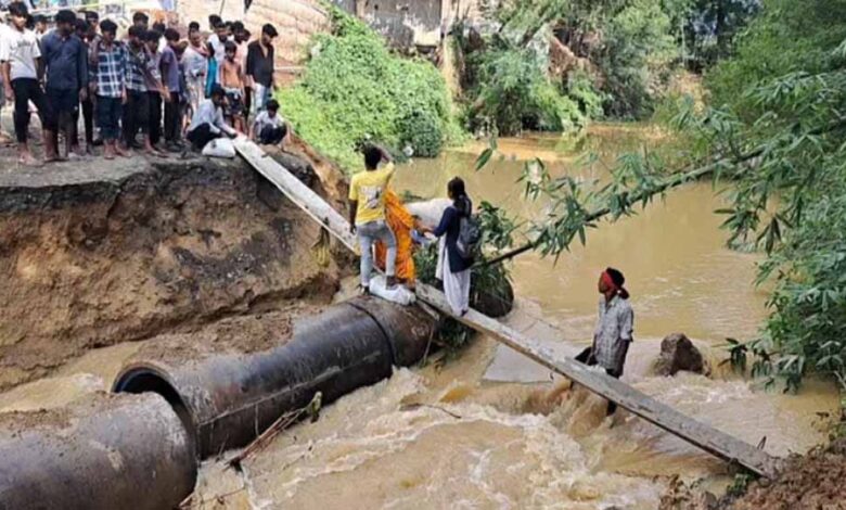 गुहिया नदी पर बना डायवर्सन पानी के दबाव के कारण बहा, आवागमन ठप