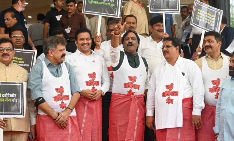 MVA विधायकों का अजीबो-गरीब प्रदर्शन: बनियान-तौलिया पहनकर पहुंचे विधानसभा