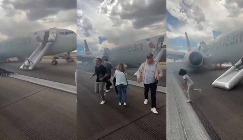 अमेरिकन एयरलाइंस की उड़ान AA3023 में शनिवार दोपहर डेनवर अंतर्राष्ट्रीय हवाई अड्डे पर मुख्य लैंडिंग गियर में आग लगने का वीडियो भी सामने आया है। इस वीडियो में विमान में सवार यात्रियों को इमरजेंसी गेट से बाहर निकलते हुए देखा जा सकता है और विमान के आसपास धुंआ छाया हुआ है।