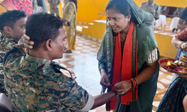 महिला एवं बाल विकास मंत्री श्रीमती लक्ष्मी राजवाड़े ने  दंतेवाड़ा प्रवास के दौरान सुरक्षा कैम्प कारली पहुंचकर जवानों से मुलाकात की। उन्होंने जवानों को राखी बांधी और उन्हें रक्षा पर्व की अग्रिम बधाई और शुभकामनाएं दीं। इस अवसर पर उन्होंने जवानों के प्रति अपना आभार और सम्मान व्यक्त करते हुए कहा कि आप सभी देश के प्रहरी हैं। यह राखी केवल एक रक्षासूत्र नहीं, बल्कि आपके प्रति हमारे विश्वास, कृतज्ञता और सम्मान का प्रतीक है। आपकी वीरता और अनुशासन, पूरे समाज के लिए प्रेरणा है। हम अपने घरों में सुरक्षित हैं, यह आपकी कर्तव्य परायणता की बदौलत है। आपकी इस सेवा को हम हृदय से सम्मान करते हैं।