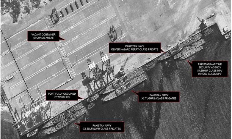 8 मई की कराची बंदरगाह की सैटेलाइट तस्वीर बताती है कि पाक नौसेना के युद्धपोत व्यावसायिक बंदरगाह और कंटेनर टर्मिनल पर खड़े थे.