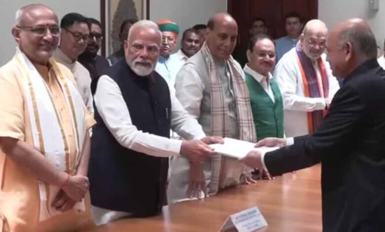 सीपी राधाकृष्णन ने उपराष्ट्रपति पद के लिए भरा नामांकन, नामांकन पत्र पर पीएम मोदी के हस्ताक्षर
