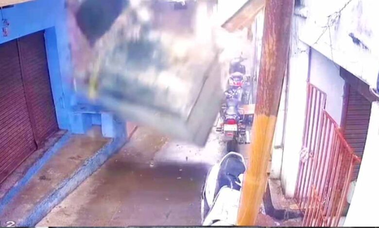 शाजापुर में होटल का शौचालय गिरा, नीचे खड़ी स्कूटी चकनाचूर