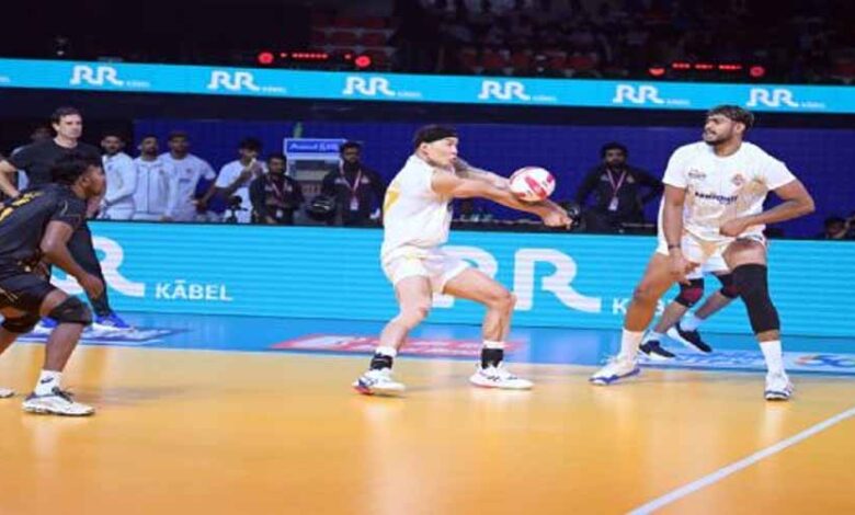 आरआर केबल प्राइम वॉलीबॉल लीग पावर्ड बाय स्कैपिया मुकाबले में अहमदाबाद डिफेंडर्स ने गत चैंपियन कालीकट हीरोज को 12-15, 15-12, 15-12, 16-14 से हरा दिया। बत्तूर बत्सुरी को प्लेयर ऑफ द मैच चुना गया। आज यहां गाचीबोवली इंडोर स्टेडियम में खेले गए मैच में अशोक बिश्नोई और शमीमुद्दीन ने शुरुआत में ही अंगमुथु के आक्रमण का मुकाबला करने के लिए टू-मैन ब्लॉक लाइन बनाई। डिफेंडर्स की बैक लाइन ने कालीकट के अटैक्स से निपटने के लिए अपने पास शानदार ढंग से वितरित किए। शॉन टी जॉन की अनुपस्थिति में, बत्सुरी ने अहमदाबाद के लिए प्रमुख आक्रामक भूमिका निभाई और अपनी टीम को एक शानदार प्रदर्शन करने में मदद की।