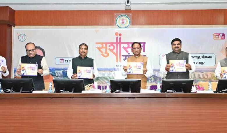 मंत्रालय महानदी भवन के पंचम तल स्थित ऑडिटोरियम में आज मुख्यमंत्री विष्णुदेव साय की अध्यक्षता में ‘सुशासन संवाद’ कार्यक्रम का आयोजन किया गया। इस अवसर पर वन मंत्री केदार कश्यप, स्कूल शिक्षा मंत्री गजेन्द्र यादव, मुख्य सचिव विकास शील, मुख्यमंत्री के प्रमुख सचिव सुबोध कुमार सिंह, मुख्यमंत्री के सचिव राहुल भगत, विभागीय सचिव, कलेक्टर, पुलिस अधीक्षक, डीएफओ सहित राज्य के वरिष्ठ अधिकारी उपस्थित थे।