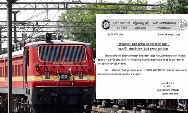 दक्षिण मध्य रेलवे ने एक ऐतिहासिक घोषणा करते हुए ‘औरंगाबाद रेलवे स्टेशन’ का नाम बदलकर ‘छत्रपति संभाजीनगर रेलवे स्टेशन’ कर दिया है। रेलवे ने बताया कि यह नाम परिवर्तन औपचारिक रूप से लागू कर दिया गया है और स्टेशन के सभी साइनबोर्ड, टिकट, घोषणाएं और डिजिटल सिस्टम में नया नाम अपडेट किया जा रहा है।