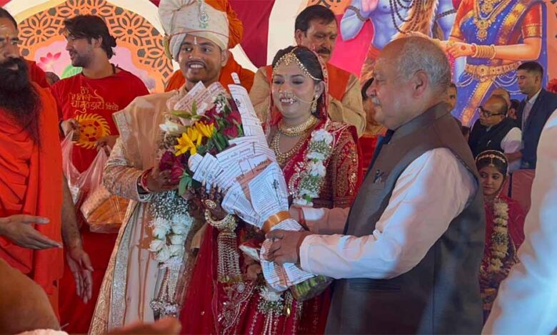 धीरेंद्र कृष्ण शास्त्री और बाबा रामदेव ने दिया दूल्हा-दुल्हन को आशीर्वाद