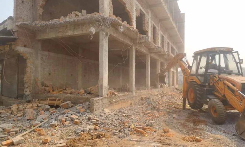 रायपुर के चंगोराभाठा में निर्माणाधीन भवन पर चला बुलडोजर, अनुमति के विपरीत किया था निर्माण