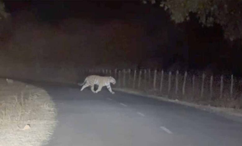 अमरकंटक में सड़क पर दिखा बाघ, गुजरते शिक्षक ने मोबाइल में कैद किया रोमांचक नज़ारा