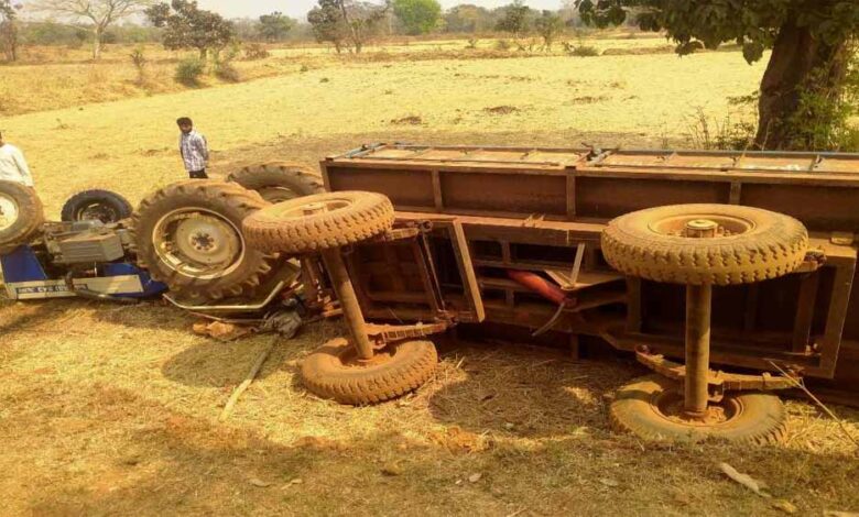 अनियंत्रित होकर पलटा तेज रफ्तार ट्रैक्टर, चालक की मौत, पांच गंभीर