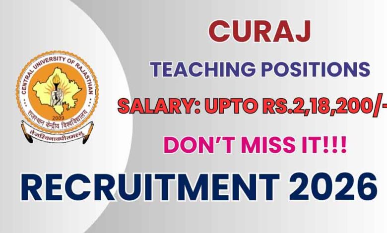 राजस्थान केंद्रीय विश्वविद्यालय ने प्रोफेसर और असिस्टेंट प्रोफेसर के पदों पर रोलिंग भर्ती विज्ञापन जारी किया है। इच्छुक और योग्य उम्मीदवार आधिकारिक वेबसाइट curaj.ac.in पर जाकर 15 मार्च 2026 तक आवेदन कर सकते हैं। इस भर्ती के तहत कुल 08 पदों को भरा जाएगा।