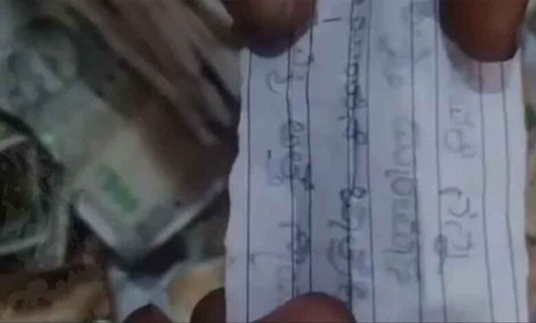 कर्नाटक के बेलगावी जिले के एक मंदिर से हैरान कर देने वाली बात सामने आई है। यहां के मंदिर के दानपात्र से पैसों की गिनती के दौरान एक चिट्ठी मिली, जिस पर भगवान से एक अजीबोगरीब दुआ मांगी गई। अधिकारी जब दानपात्र में पैसों की गिनती कर रहे थे, तब उन्हें 100 रुपये के नोट के अंदर मुड़ी हुई एक चिट्ठी मिली, जिसे पढ़कर हर कोई दंग रह गया।
