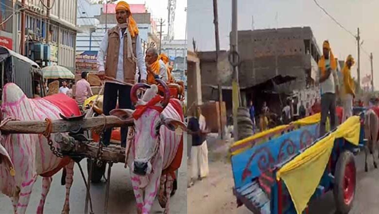 शहर की सड़कों पर बुधवार की शाम कुछ अलग ही था। न डीजे की कानफोड़ू आवाज, न रोशनी की चकाचौंध, न लग्जरी गाड़ियों की कतार। अगर कुछ था तो बैलों की सधी हुई चाल, लकड़ी की बैलगाड़ियों की मद्धिम चरमराहट और लोकगीतों की कोमल तान। यह नजारा देख हर राहगीर ठिठक गया, मोबाइल कैमरे निकल आए और एक ही सवाल गूंजने लगा, अब भला बैलगाड़ी से भी कोई बरात जाता है?