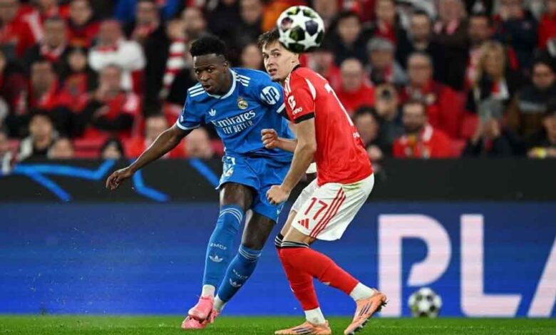 15 बार के यूरोपीय चैंपियन रियल मैड्रिड ने शानदार वापसी करते हुए बेनफिका को 2-1 से हराया और कुल 3-1 की बढ़त के साथ यूईएफए चैंपियंस लीग के अंतिम-16 में प्रवेश कर लिया। सैंटियागो बर्नब्यू में खेले गए रोमांचक मुकाबले में विनीसियस जूनियर ने निर्णायक गोल कर टीम को जीत दिलाई।