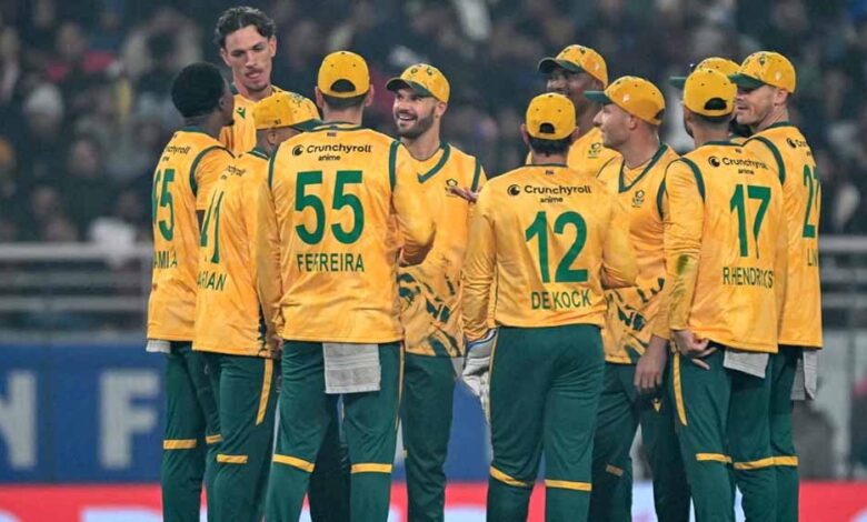दक्षिण अफ्रीका XI – एडेन मार्कराम (कप्तान), क्विंटन डी कॉक (विकेटकीपर), रयान रिकेल्टन, डेवाल्ड ब्रेविस, डेविड मिलर, ट्रिस्टन स्टब्स, जॉर्ज लिंडे, कॉर्बिन बॉश, एनरिक नॉर्खिया, क्वेना मफाका और लुंगी एनगिडी।