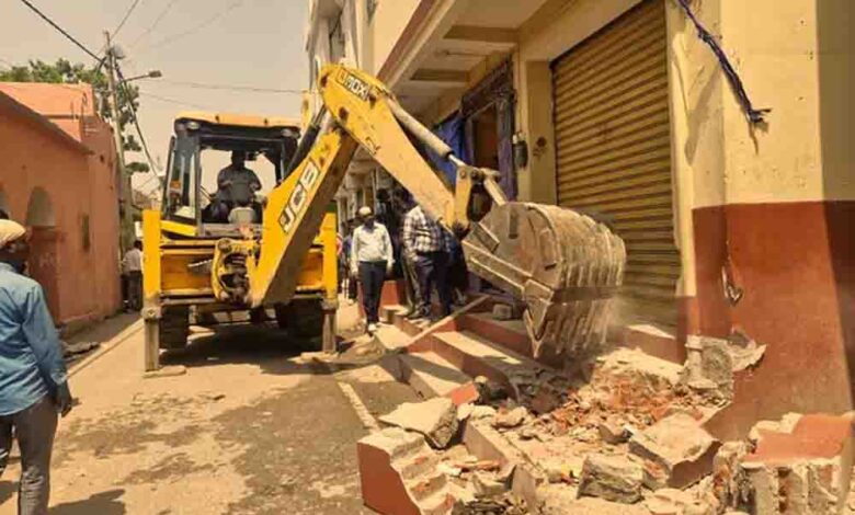मघड़ा मंदिर हादसे के बाद एक्शन में प्रशासन, 8 मौतों के बाद मंदिर परिसर में चला बुलडोजर