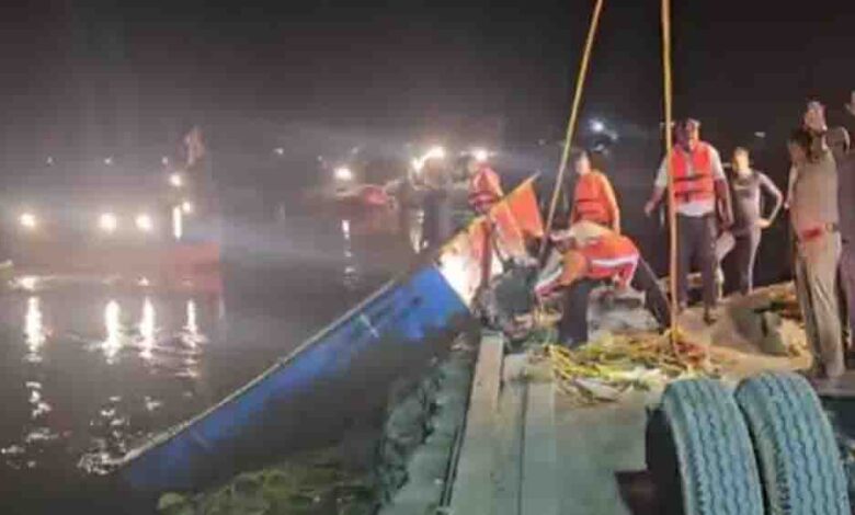 उत्तर प्रदेश के वृंदावन में यमुना नदी में श्रद्धालुओं से भरी नाव पलटने से हुए हादसे में हुए 10 लोगों की मौत के बाद गहरे पानी में फंसी बोट को 5 घंटे के अथक प्रयासों के बाद निकाला जा सका है। हादसे के बाद चारों ओर कोहराम मचा हुआ है तस्वीरों में आप स्वयं देख सकते हैं कि किस प्रकार मध्यरात्रि के बाद तक चले सर्च ऑपरेशन अभियान के दौरान गहरे पानी में फंसी मोटर वोट को बाहर निकाला गया है. वहीं लापता हुए पांच अन्य लोगों की लिए रेस्क्यू अभी भी जारी है .सभी मृतकों के शवों का पोस्टमार्टम कर उनके गतंव्य स्थान पर भेज दिया गया है.