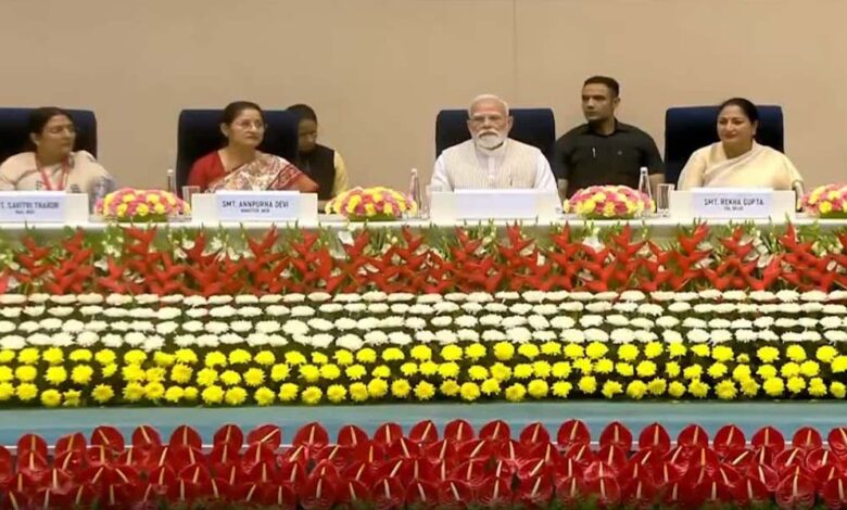 प्रधानमंत्री नरेंद्र मोदी ने सोमवार को राष्ट्रीय राजधानी के विज्ञान भवन में राष्ट्रीय स्तर के 'नारी शक्ति वंदन सम्मेलन' को संबोधित किया. सम्मेलन में सरकार, शिक्षा, विज्ञान, खेल, उद्यमिता, मीडिया, सामाजिक कार्य और संस्कृति सहित अलग-अलग क्षेत्रों की जानी-मानी हस्तियां और सफल महिलाएं शामिल हुईं ।