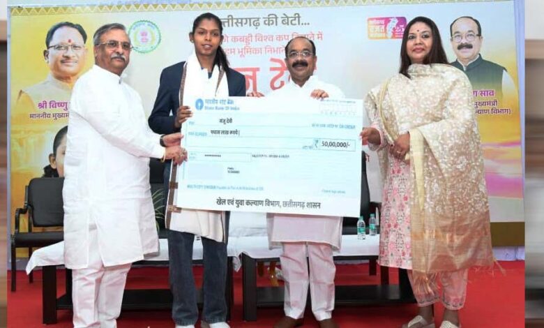 उप मुख्यमंत्री अरुण साव ने सौंपा चेक, राज्य में पहली बार किसी खिलाड़ी को दी गई है इतनी बड़ी प्रोत्साहन राशि