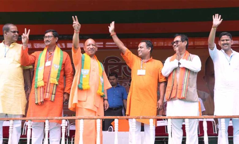मुख्यमंत्री योगी आदित्यनाथ शनिवार को पश्चिम बंगाल के चुनावी रण में फिर गरजे। माथाभांगा व धुपगुड़ी विधानसभा क्षेत्रों में आयोजित जनसभाओं को संबोधित करते हुए उन्होंने नारी शक्ति वंदन संशोधन विधेयक पर लोकसभा में विपक्षी दलों के रुख की भर्त्सना की। मुख्यमंत्री ने कहा कि बांग्लादेशी घुसपैठियों के पैरोकारों ने यह संशोधन विधेयक पास नहीं होने दिया। यह देश की आधी आबादी का अपमान है, माता-बहनें इसे किसी रूप में बर्दाश्त नहीं करेंगी। सीएम योगी ने पश्चिम बंगाल की मौजूदा अराजक स्थिति के लिए तृणमूल कांग्रेस (टीएमसी) को दोषी ठहराते हुए ऐलान किया कि ममता बनर्जी सिंहासन खाली करो, बीजेपी आ रही है। अब बंगालवासियों को घबराने की आवश्यकता नहीं है।