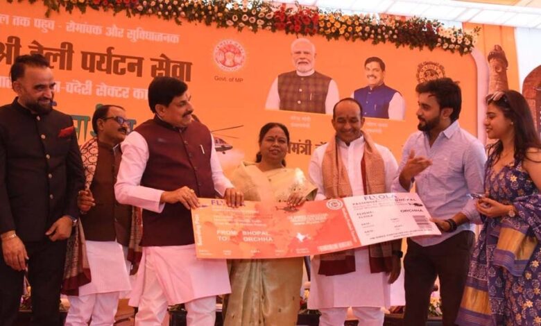 मुख्यमंत्री डॉ. यादव ने "पीएमहेली पर्यटन सेवा" के अंतर्गत नए सेक्टर भोपाल-चंदेरी-ओरछा हेलीकॉप्टर यात्रा का किया शुभारंभ