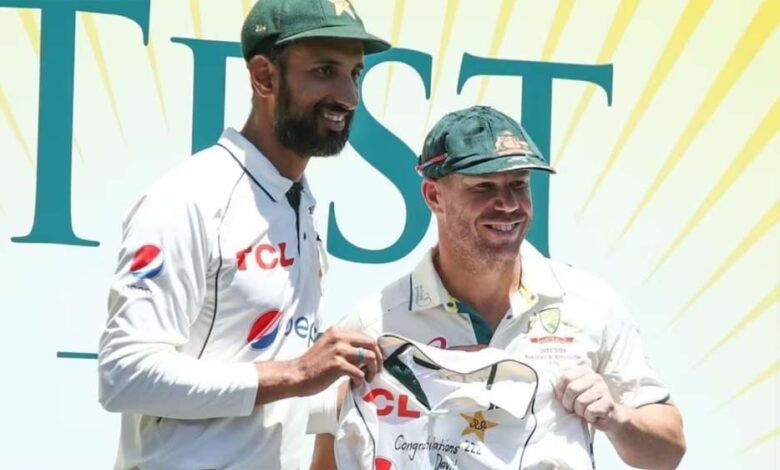 डेविड वॉर्नर को पाकिस्तानी कप्तान शान मसूद ने हस्ताक्षरित जर्सी भेंट की