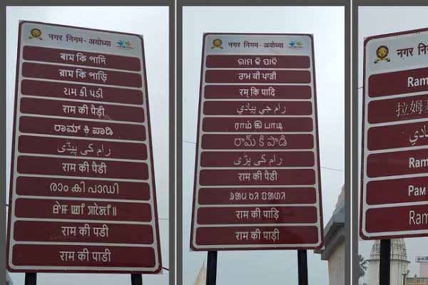 अयोध्या नगरी में भव्य राम मंदिर की प्राण-प्रतिष्ठा को लेकर सभी जरूरी तैयारियों को अंतिम रूप दिया जा रहा है। हर छोटी- बड़ी वस्तु, सामग्री व सुविधाओं पर भी विशेष रूप से ध्यान दिया जा रहा है। ऐसे में विश्व के विभिन्न हिस्सों से अयोध्या के मंदिरों में दर्शन पूजन के लिए आने वाले देशी और विदेशी रामभक्तों को मंदिर परिसर तक पहुंचने में किसी परेशानी का सामना नहीं करना पड़े, इसके लिए अलग- अलग स्थानों पर बहुभाषीय 'संकेतक' यानी साइन बोर्ड लगाए जा रहे हैं।