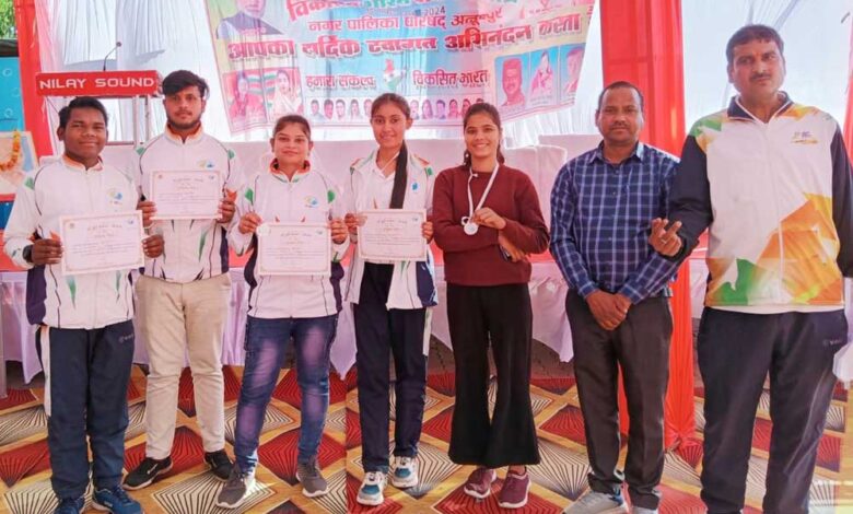 भारत सरकार की योजनाओं का लाभ लोगों तक पहुंचाने के लिए प्रदेश भर में विकसित भारत संकल्प यात्रा का आयोजन किया जा रहा है। इसी कड़ी में 13 जनवरी को नगर पालिका क्षेत्र अनूपपुर में विकसित भारत संकल्प यात्रा के दौरान खेल युवा कल्याण विभाग अनूपपुर द्वारा समतपुर तालाब के पास स्थानीय बच्चों द्वारा खेलो इंडिया के तहत कराटे का प्रदर्शन किया गया। इसके साथ ही खेलों इंडिया के तहत प्रतिभावान खिलाड़ियों एवं मां तुझे प्रणाम योजना के लाभार्थी छात्र, छात्राओं का सम्मान किया गया।