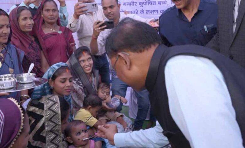 मुख्यमंत्री विष्णु देव साय ने आज कबीरधाम जिले के ग्राम कुसुमघटा में किसान सम्मेलन एवं अभिनंदन कार्यक्रम स्थल पर महिला एवं बाल विकास विभाग और वन विभाग द्वारा लगाए गए स्टाल का अवलोकन किया। इस दौरान उन्होंने महिला एवं बाल विकास विभाग के स्टॉल में शिशुओं को खीर खिलाकर अन्नप्राशन कराया। उन्होंने स्टॉल में गर्भवती महिलाओं को सुपोषण किट तथा किशोरियों को उपहार प्रदान किया। उप मुख्यमंत्री विजय शर्मा, कृषि मंत्री राम विचार नेताम, वन मंत्री केदार कश्यप, स्वास्थ्य मंत्री श्याम बिहारी जायसवाल, महिला एवं बाल विकास मंत्री श्रीमती लक्ष्मी राजवाड़े ने भी मुख्यमंत्री के साथ स्टालों का अवलोकन किया।