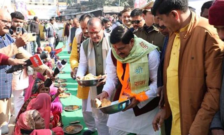 मुख्यमंत्री डॉ. यादव ने जनप्रतिनिधियों के साथ रामराजा दरबार में चल रहे भंडारे में शामिल होकर भोजन प्रसादी ग्रहण की।