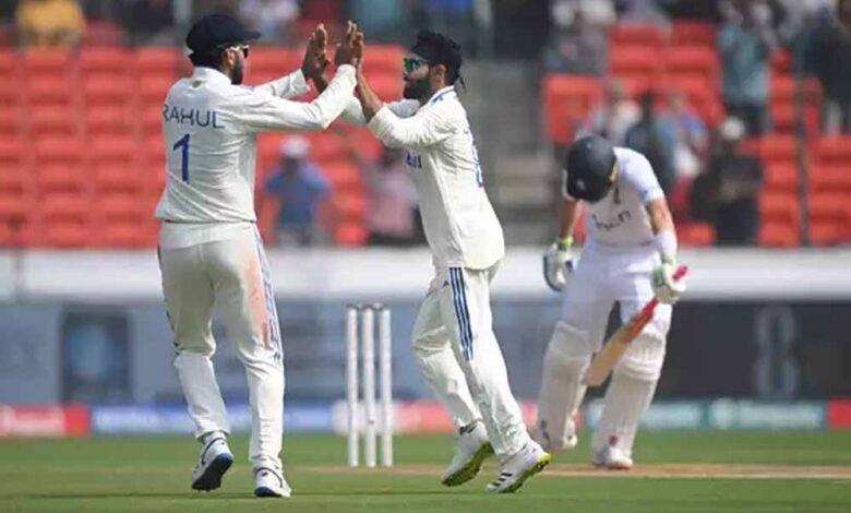 इंडिया वर्सेस इंग्लैंड 5 मैच की टेस्ट सीरीज का पहला मुकाबला हैदराबाद के राजीव गांधी इंटरनेशनल स्टेडियम में खेला जा रहा है। टॉस जीतकर पहले बैटिंग करने उतरी इंग्लिश टीम 246 रनों पर ढेर हो गई। इंग्लैंड के लिए कप्तान बेन स्टोक्स ने 70 रनों की शानदार पारी खेली, उनके अलावा कोई भी इंग्लिश बल्लेबाज 50 रन का आंकड़ा पार नहीं कर पाया। वहीं भारत के लिए रविचंद्रन अश्विन और रविंद्र जडेजा ने 3-3 विकेट चटकाए। इसके अलावा जसप्रीत बुमराह और अक्षर पटेल को 2-2 सफलताएं मिली। रोहित शर्मा और यशस्वी जायसवाल की जोड़ी भारतीय पारी का आगाज करने मैदान पर उतर गई है।