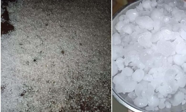 ओले सड़कों और लोगों के छतों में बिछ गए