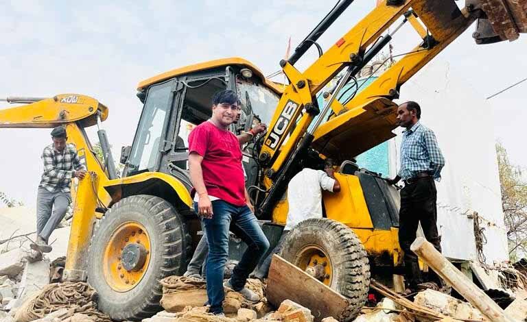 संतोष के पिता की फरियाद पर आरोपियों के अवैध निर्माण पर चला बुलडोजर