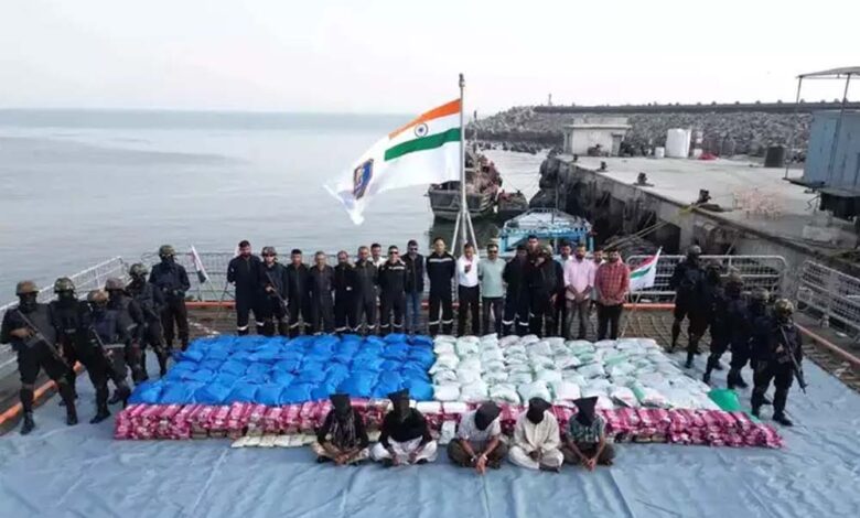 भारतीय नौसेना, एनसीबी और गुजरात एटीएस ने संयुक्त ऑपरेशन में 3100 किलो ड्रग्स पकड़ी