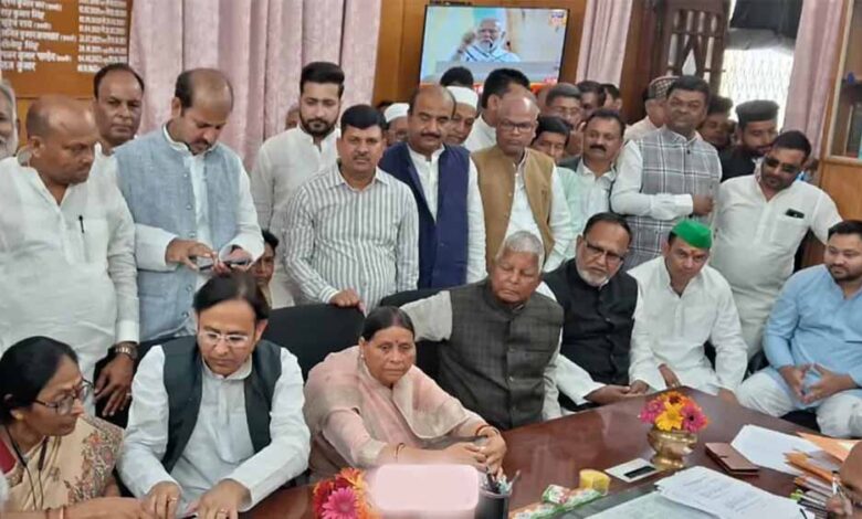 लालू प्रसाद यादव ने गृह मंत्री अमित शाह के उल्टा लटका कर सीधा कर देंगे वाले बयान के सवाल पर कहा कि वह एक बार फंसे थे न.. फिर फसाएंगे। वहीं तेजस्वी यादव ने कहा कि मोदी सरकार लोकतंत्र पर खत्म करने की कोशिश कर रही है। केंद्रीय एजेंसियों का गलत उपयोग किया जा रहा है। बिहार विधान परिषद (एमएलसी) चुनाव के लिए पूर्व मुख्यमंत्री राबड़ी देवी समेत महागठबंधन के पांच उम्मीदवारों ने अपना नामांकन पर्चा भर दिया। इस मौके पर राष्ट्रीय जनता दल के सुप्रीमो लालू प्रसाद यादव और पूर्व डिप्टी सीएम तेजस्वी यादव मौजूद थे। राजद की ओर से पूर्व मुख्यमंत्री राबड़ी देवी, अब्दुल बारी सिद्दीकी, फैसल अली, डॉ. उर्मिला ठाकुर और भाजपा (माले) की ओर से शशि यादव ने अपना नामांकन पर्चा दाखिल किया।