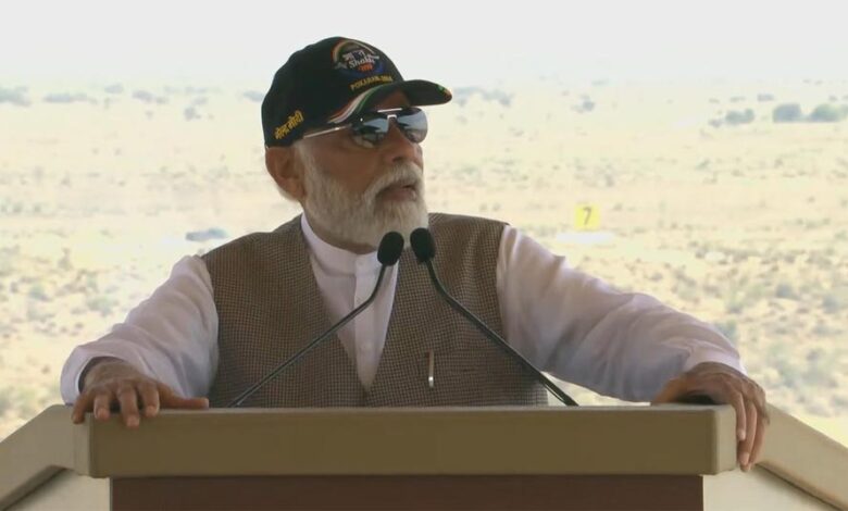 प्रधानमंत्री नरेंद्र मोदी ने पोखरण फील्ड फायरिंग रेंज में आयोजित त्रि-सेवा अभ्यास “भारत शक्ति” में हिस्सा लिया