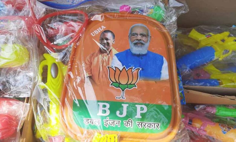 बाजार में प्रधानमंत्री नरेंद्र मोदी और यूपी के सीएम योगी आदित्यनाथ की फोटो लगी पिचकारियों की डिमांड