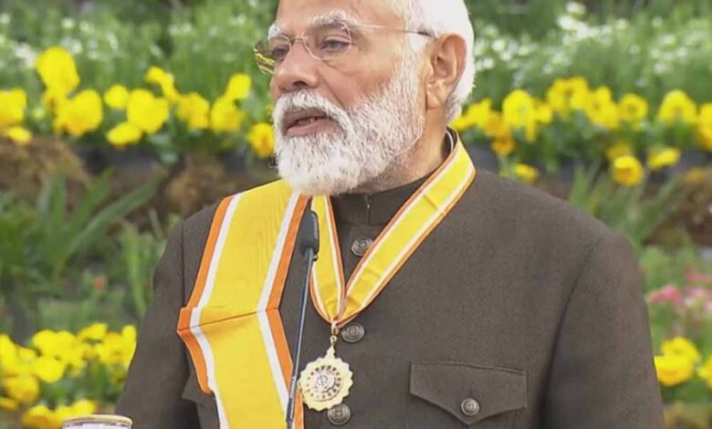 पीएम मोदी ने भूटान के टेंड्रेलथांग फेस्टिवल ग्राउंड में एक कार्यक्रम में हिस्सा लिया। यहां पर जनता को संबोधित करते हुए पीएम मोदी ने कहा कि आज एक भारतीय के नाते मेरे जीवन का बहुत बड़ा दिन है। आपने मुझे भूटान के सर्वोच्च राष्ट्रीय अवार्ड से सम्मानित किया है। हर अवार्ड अपने आप में विशेष होता है, लेकिन जब किसी अन्य देश से अवार्ड मिलता है, तो भरोसा मजबूत होता है कि हम दोनों देश सही दिशा में आगे बढ़ रहे हैं। उन्होंने कहा, "ये सम्मान मेरी व्यक्तिगत उपलब्धि नहीं है, ये भारत और 140 करोड़ भारतीयों का सम्मान है। भूटान की इस महान भूमि पर मैं सभी भारतवासियों की ओर से ये सम्मान नम्रता से स्वीकार करता हूं और इस सम्मान के लिए आप सभी का हृदय से कोटि-कोटि धन्यवाद करता हूं।"
