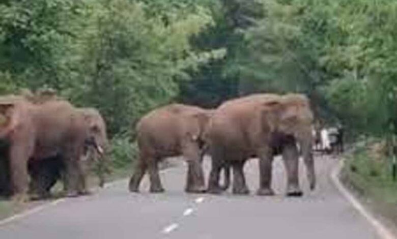 क्रोंधा गांव में दो नर हाथी सड़क पार करते देख कुछ समय तक आवागमन बाधित रहा, वन विभाग के कैमरे में कैद
