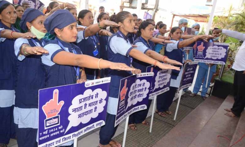 कलेक्टर ने अस्पताल के सभी कर्मचारियों को शपथ दिलाई कि हम, भारत के नागरिक लोकतंत्र में अपनी पूर्ण आस्था रखते हुए यह शपथ लेते है कि हम अपने देश की लोकतांत्रिक परम्पराओं की मयार्दा को बनाये रखेंगे तथा स्वतंत्र, निष्पक्ष एवं शांतिपूर्ण निर्वाचन की गरिमा को अक्षुण्ण रखते हुए, निर्भीक होकर, धर्म, वर्ग, जाति, समुदाय, भाषा अथवा अन्य किसी भी प्रलोभन से प्रभावित हुए बिना सभी निर्वाचनों में अपने मताधिकार का प्रयोग करेंगें। कार्यक्रम में छत्तीसगढ़ी गीत लोकतंत्र के ताकत बर अपन वोट ला पहचान, साथ मिलकर जम्मों झन करबो मतदान के माध्यम से मतदाताओं को शत-प्रतिशत मतदान करने के लिए जागरूक किया गया। इस दौरान सभी अधिकारी-कर्मचारी गीत की बोल दोहराते हुए मतदान करने की अपील की।
